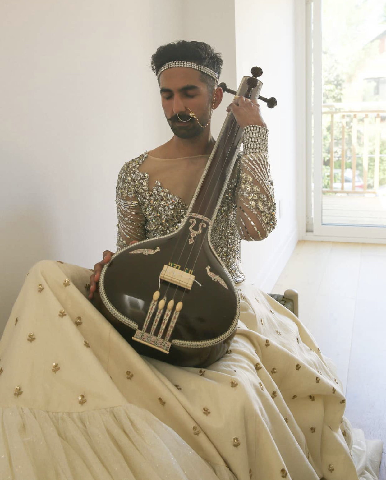 top (L) @aravaniartproject (M) Hasheel is a Toronto based artist trained in, Indian classical vocals and Bansuri (Indian flute) www.hasheel.com (R) photograph by, Nandini Valli Muthiah, from The Definitive Reincarnate collection. Ram’s avatar, Vishnu has been “sorta updated” looking forlorn on a bed bottom @aravaniartproject, the mural proposes to remind people of the inherent acceptance of gender fluidity. Using geometric shapes forming a gender fluid face that refuses to look away with Hibiscus flowers-known for having both male and female parts.