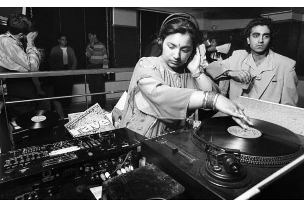 (L) Rani Kaur, aka DJ Radical Sister, mixing records at a day timer in the 90s. Photograph by: Tim Smith, Source: The Guardian (R) a scene from, director and actor Riz Ahmed’s 2016 short film Daytimer